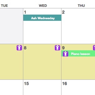 Events may recur on any pattern just as you're used to in most other calendar tools. Everything you need is attached to the event.