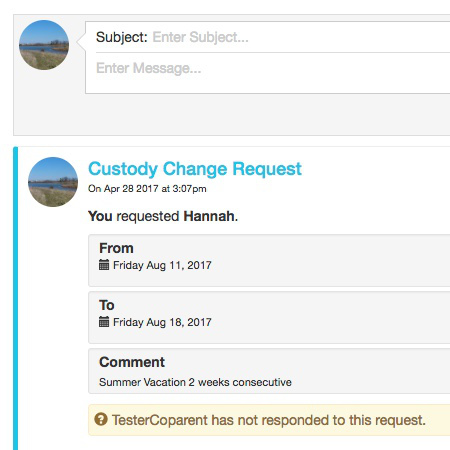 Send swap requests to co-parent for approval. Minimize the conflict!